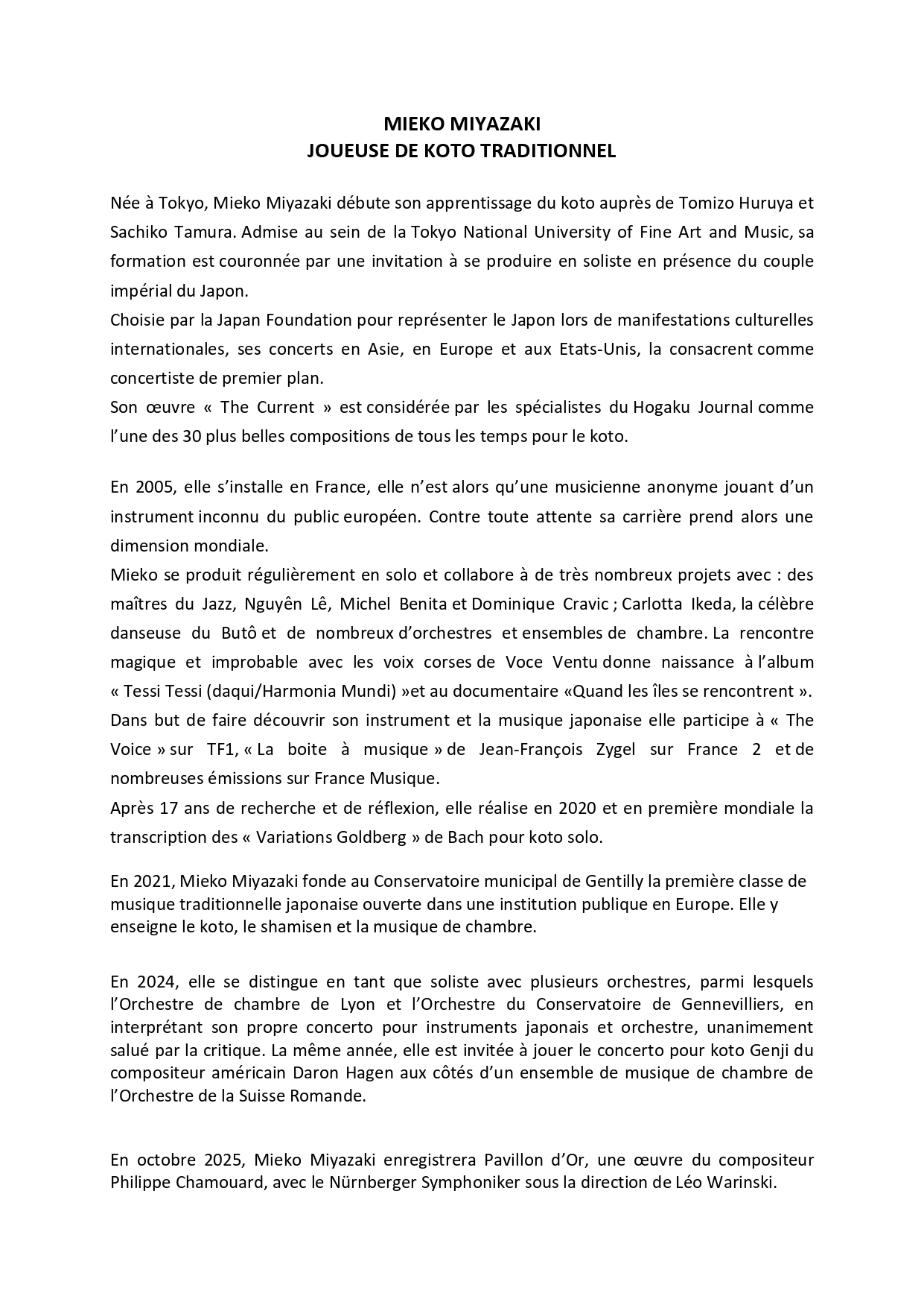 Misato Mochizuki « Suikinkutsu » pour quatuor avec piano et koto, commande du trio G. Sand